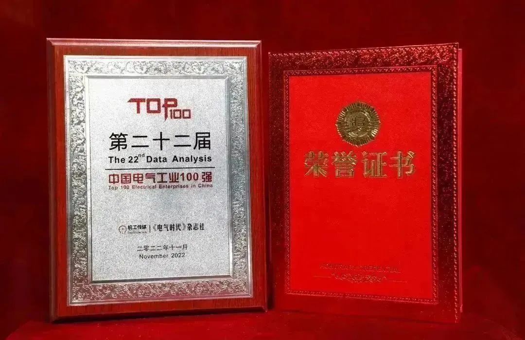 南宫ng28深瑞荣获“中国电气工业100强”称号